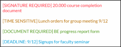 Often time emails are time-sensitive or have a simple but important request (e.g. signature on a document). Consider including this information in brackets [LIKE SO] followed by your subject line: